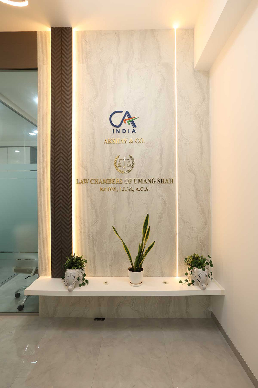 The Ask: Being a CA firm, they wanted us to design a space that conveys a sense of reliability and professionalism, making clients feel confident in the firm’s capabilities. They wanted Optimum use of space to accommodate desks, storage, and private offices, ensuring all team members have enough workspace while keeping areas like the reception, waiting area, and private offices distinct.